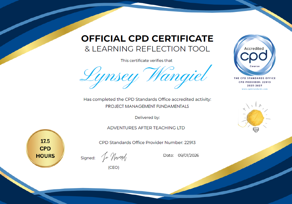 Recently accredited in Project Management Fundamentals through the CPD Standards Office, I bring structured, professional expertise to keep your projects on track.